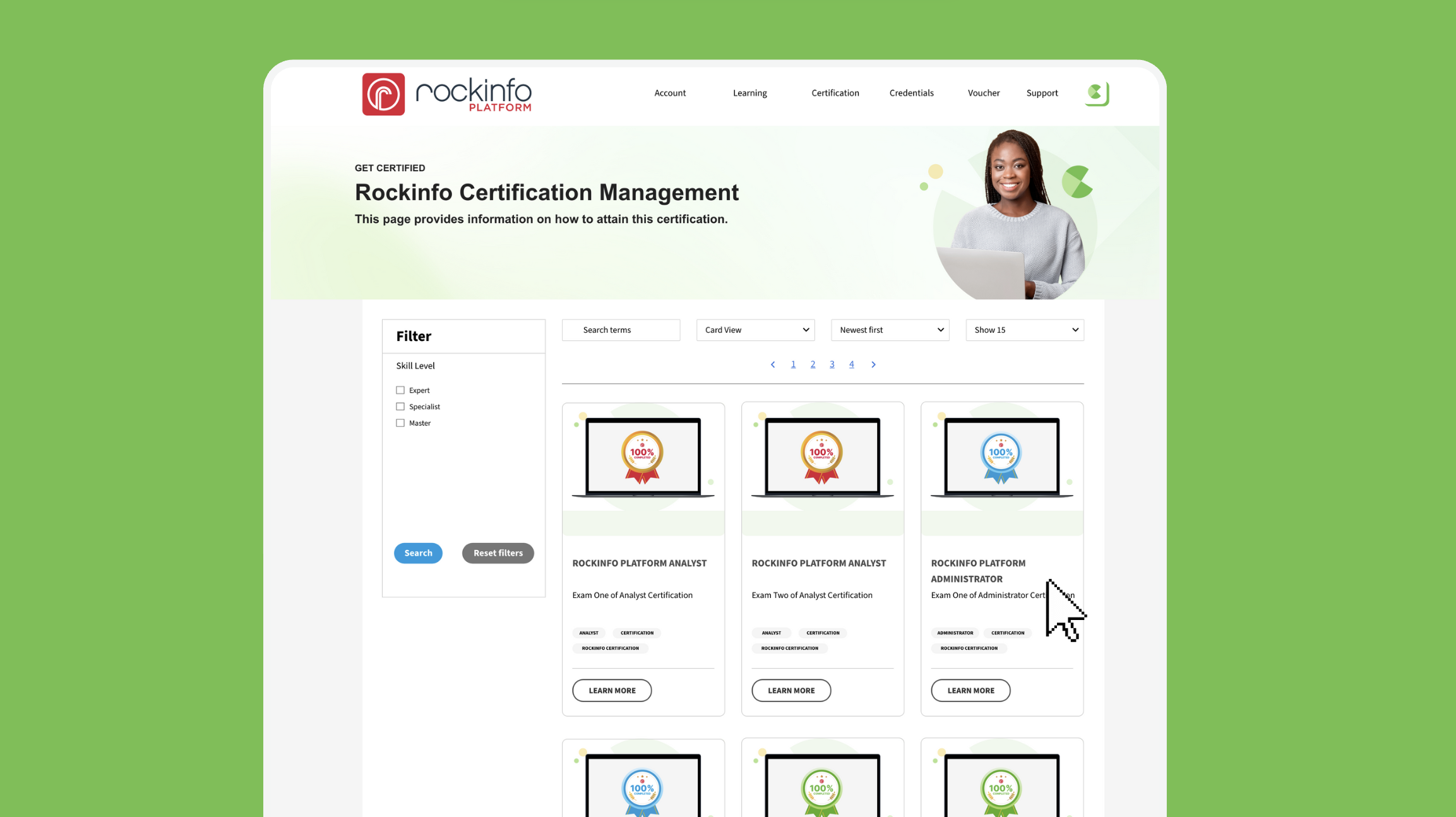 Rockinfo unifies the certification journey from exam registration to credential issuance, creating a seamless experience for candidates and reducing administrative overhead for program managers.